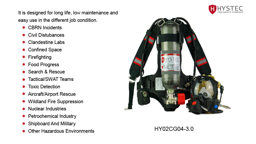 With through a long exploration and proven tradition of understanding the specific requirements of the personal protection respirator markets; HYSTEC offers the range of high quality products which designs to address all of users concerns and specific  concentrates on producing the durable,dependable Self Contained Breathing Apparatus to fulfill the multiple fields needs, as well as to offer users ease of use, comfort and low through life costs with the products be approved related standards.