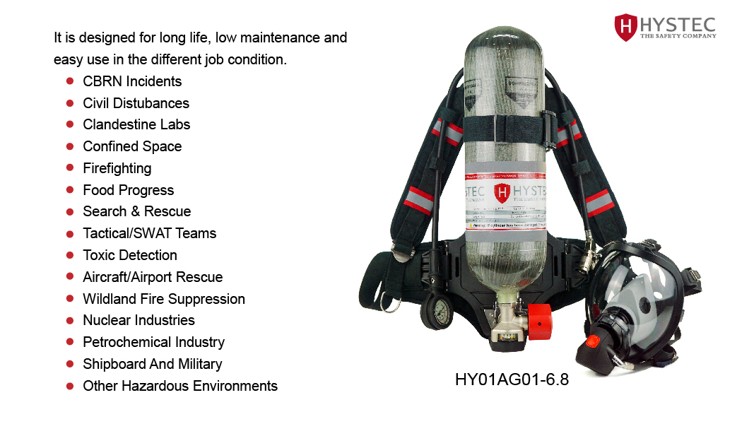 With through a long exploration and proven tradition of understanding the specific requirements of the personal protection respirator markets; HYSTEC offers the range of high quality products which designs to address all of users concerns and specific  concentrates on producing the durable,dependable Self Contained Breathing Apparatus to fulfill the multiple fields needs, as well as to offer users ease of use, comfort and low through life costs with the products be approved related standards.